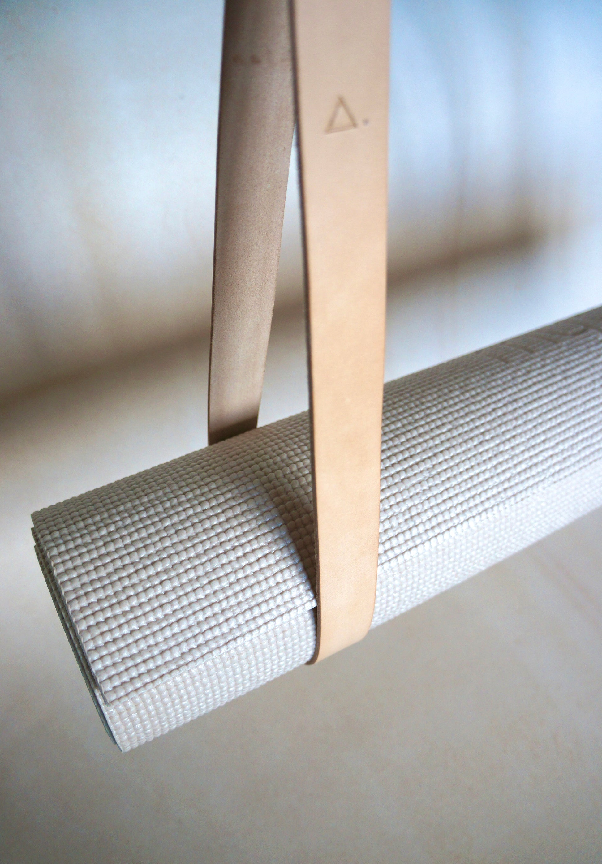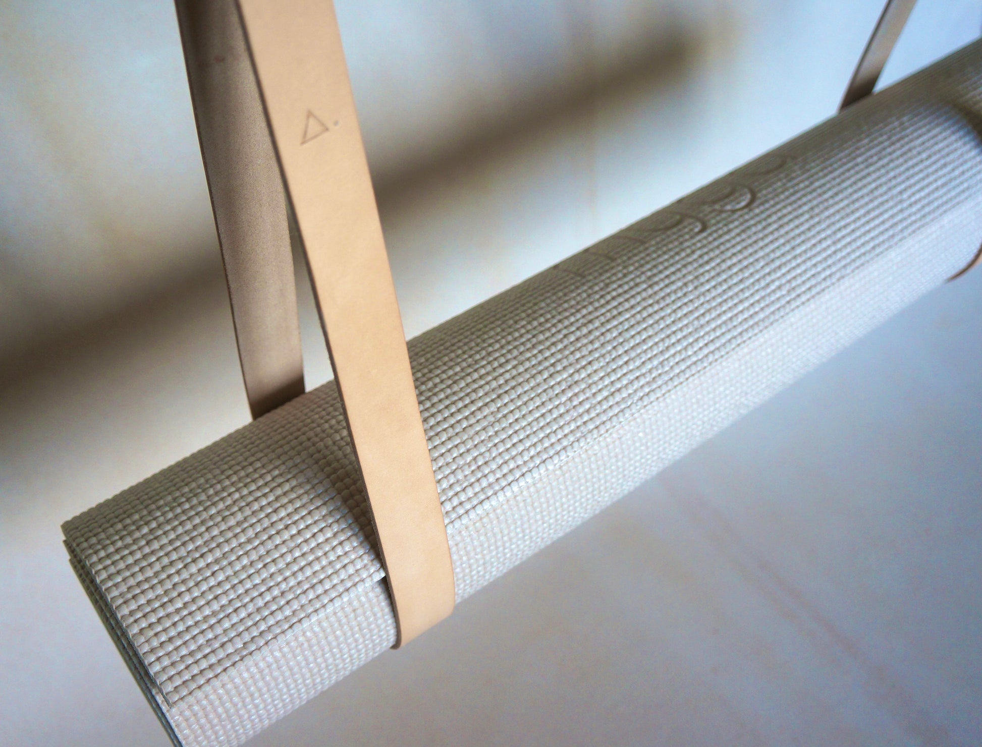 Set of 2 natural veg tan leather straps. Perfect for storing your pilates mat safely on the wall with style.